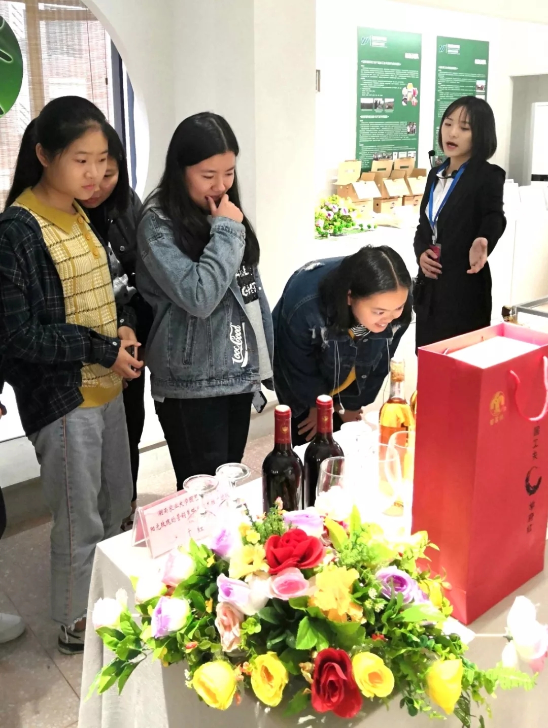 随后解说员带领大家进入内侧展厅,这个展厅主要介绍了农学院、园艺院、植保院、食科院创业团队的成果。