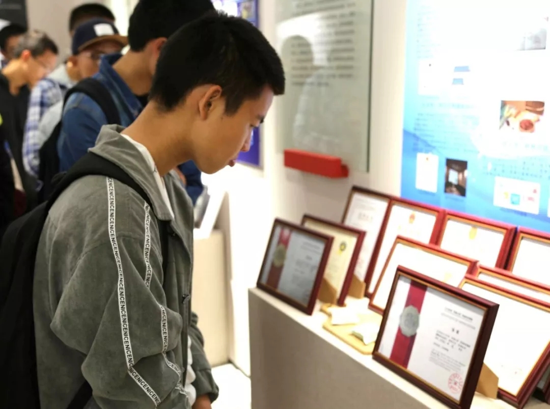 随后解说员带领参观人员进入了下一个展厅,这个展厅分布了理学院、工学院、信科院、生科院、东科院、动医院、资环院的各项研发成果。