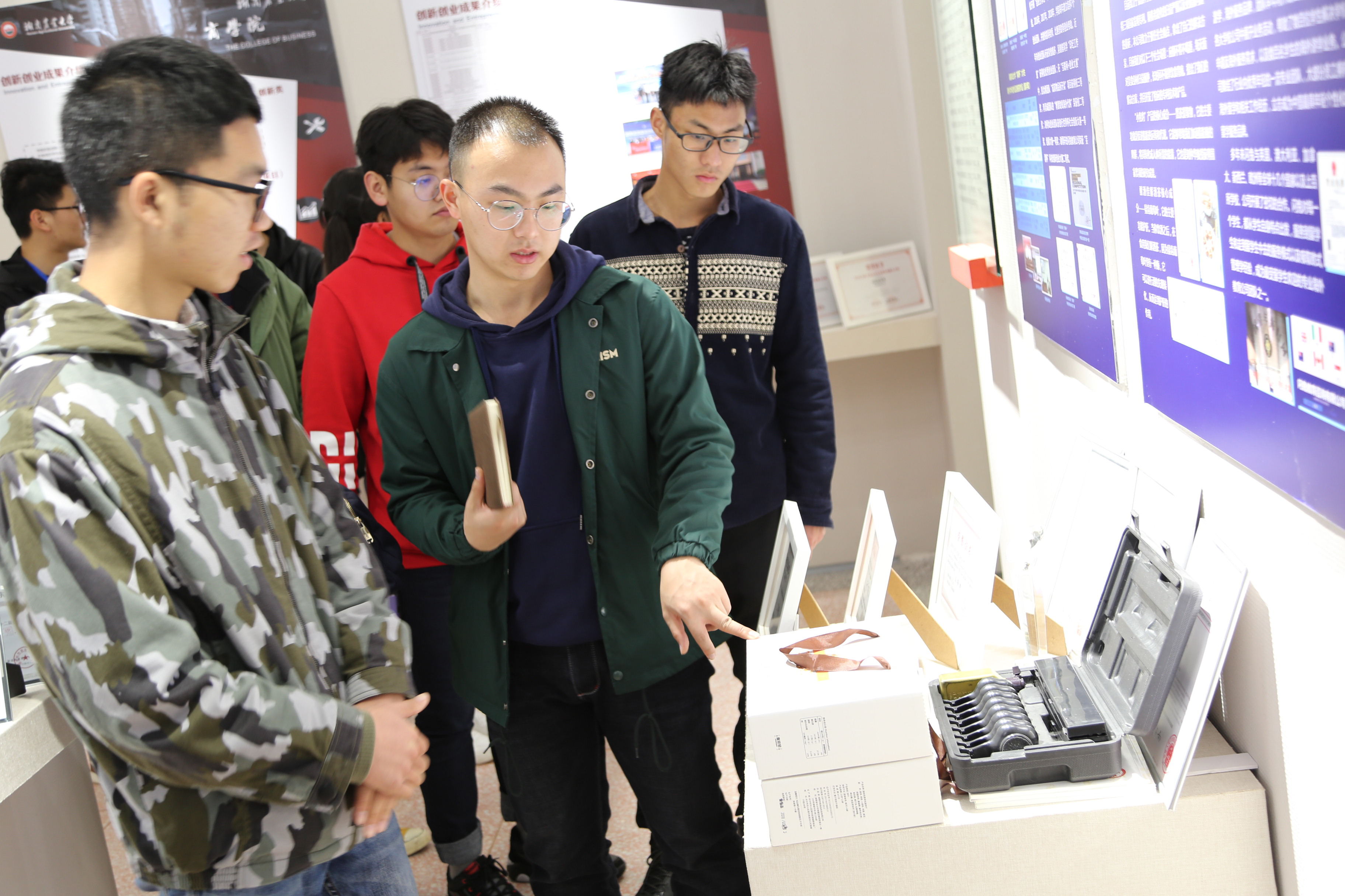 我校工作人员带领前来交流的同学参观我校的创新创业成果展展厅