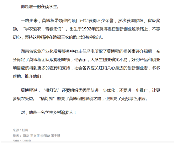 “乡村追梦人|莫博程:‘橘灯笼’照亮创...